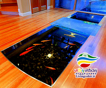 آکواریوم کف جایگزین حوض : از گذشته استفاده از عناصر طبیعی در چیدمان منزل، یکی از روشهای مرسوم در زیبایی خانه های شرقی بوده است. طراوت یک باغچه سبز با گل و گیاه زینتی و یا حوضچه آب با چند ماهی قرمز در حیاط، فضای زیبایی را در خانه های قدیم ایجاد می کردند.