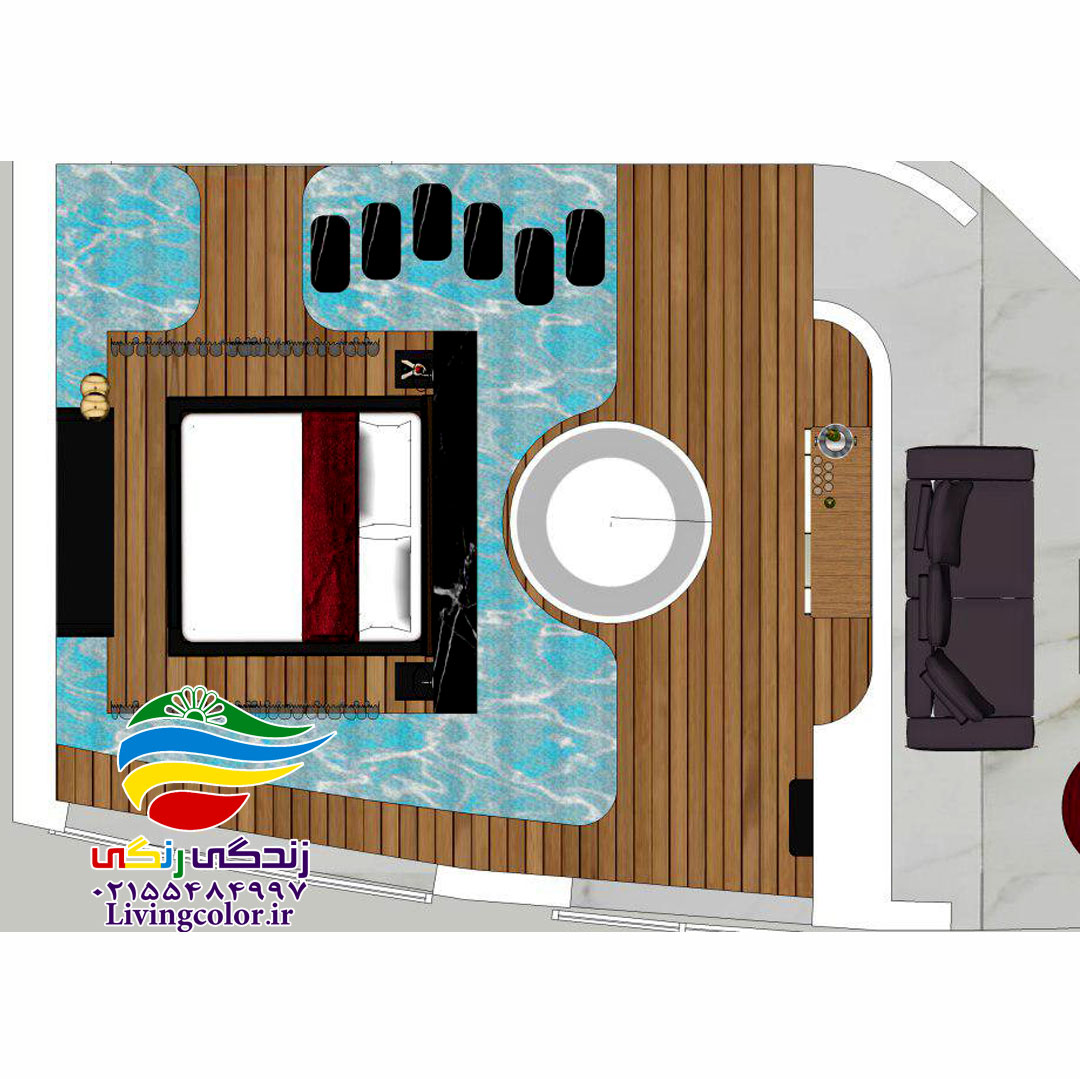 تیم فنی هلدینگ زندگی رنگی در یکی از واحدهای برج های دوقلو کیش، یک برکه زیبا و لوکس اجرا نموده است.